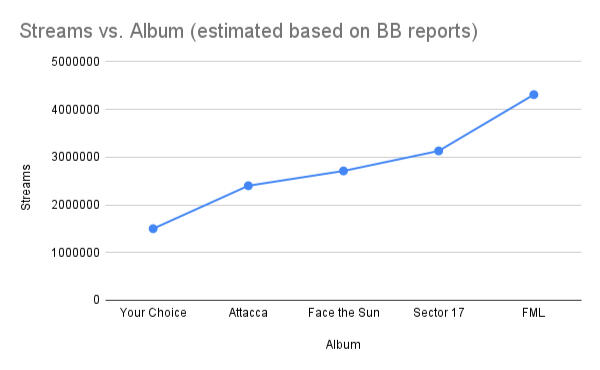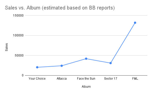 Current Album Sales: Face the Sun #1 (6/11) 23 week streak